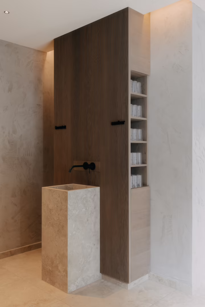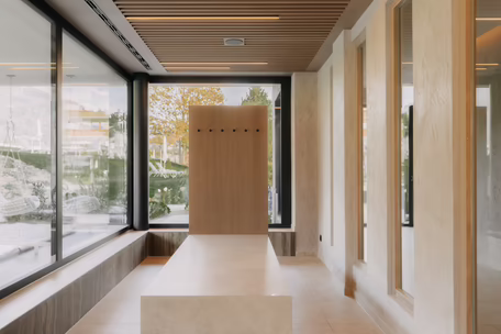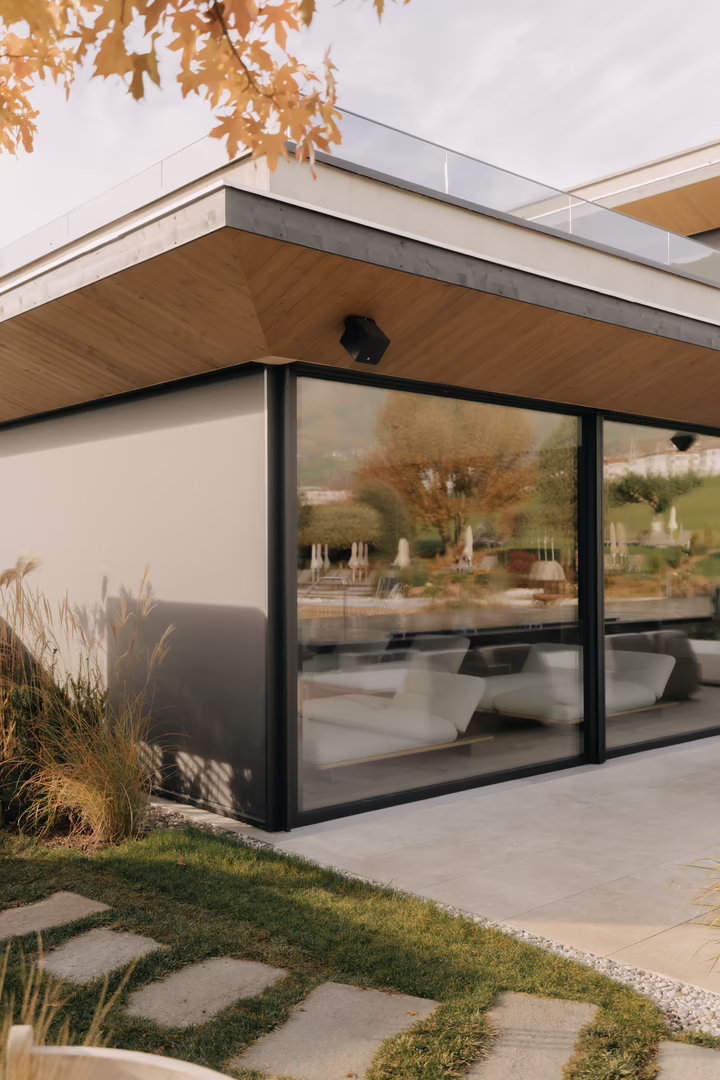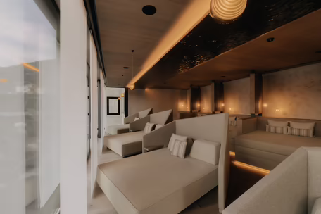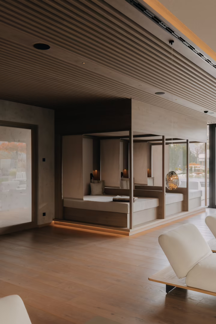 Seit Mai 2025 ist alles fertig und es wurde wirklich sehr viel Energie in diese Baustelle gesteckt. Allein die folgenden Zahlen veranschaulichen die Dimensionen: 11.000 Baumeisterstunden, 13.000 m3 Aushub, 265 t Bewehrung, 3.400 m3 Beton, 2.080 m2 verlegter Estrich und bis zu 30 Mitarbeiter pro Tag (inklusive Subunternehmen), die nur seitens des RIEDER Hochbau Teams unter der Leitung von Murat Karakoc von Oktober 2024 bis Mai 2025 zu koordinieren waren. Dazu packten während der letzten Wochen vor der Eröffnung bis zu 10 Monteure der RIEDER Tischlerei kräftig mit an. Mit Präzisionsarbeit hatten sie zuvor schon alles vorbereitet, damit dann, just in time, alles eingebaut werden konnte: diverse Schränke und Fächer, 14 Liegekojen, Täfer und Holzdecken der drei Ruheräume sowie über dem Innenpool. Das Engagement des RIEDER Teams komplettierte sich mit dem RIEDER Holzbau Team. Es montierte die Untersichtschalungen bei den Vordächern, diverse Mauerabdeckungen sowie die Sitzbänke der Poollounge und der Pergola. Aus diesen Infor-mationen könnte man nun schlussfolgern, dass die Baustelle einfach nur stressig war. Doch Murat Karakoc dementiert:„Obwohl diese Zeit herausfordernd war, hat sie wirklich Spaß gemacht.“ Der Teamgeist und die herausragende Leistung aller Männer und Frauen auf der Baustelle machten es möglich, dass nach achtmonatiger Bauzeit die Gäste die neuen Bereiche nutzen konnten.
