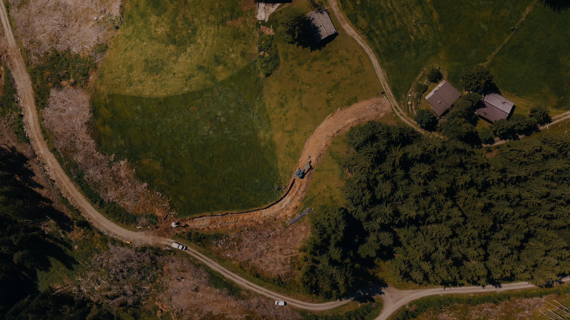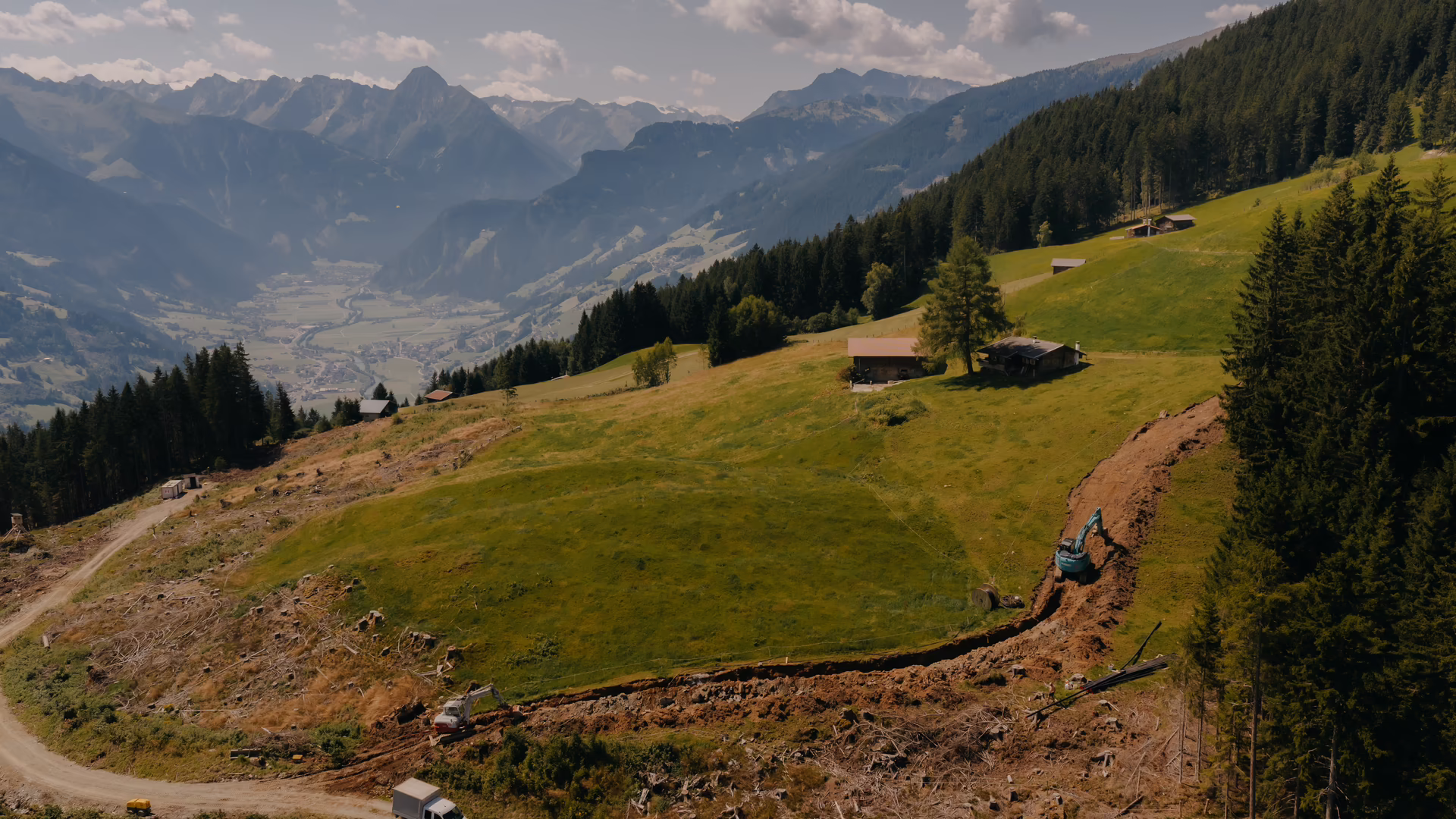 Damit die Voraussetzungen für ein einwandfreies und modernes Hüttenfeeling gegeben sind, war das RIEDER Tiefbau Team von Juli bis Oktober 2025 schwer im Einsatz – mit einem 9-Tonnen-Bagger, einem 25-Tonnen-Bagger und einem Schreitbagger im steilen Gelände. Diesen Arbeiten gingen Holzschlägerungen im teils bewaldeten, recht steilen Erschließungsbereich durch den Grundbesitzer voraus.