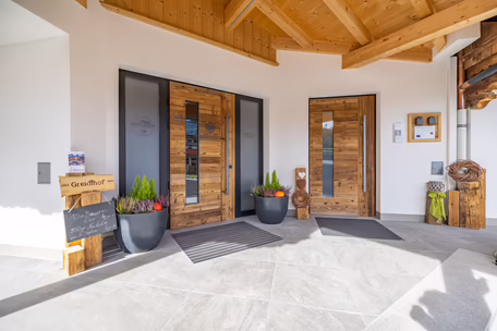 Die vier neuen RIEDER Haustüren verleihen dem Gästeerlebnis in den Greidlhof Appartements und in Annis-Hofladen einen würdigen Auftakt! Warme Türen, die verbinden, begrüßen und verabschieden. Passend zum Erscheinungsbild des neuen Gebäudes, entschied sich der traditionsbewusste Kunde für rustikale Außentüren im Altholz-Design. Der mit Lasertechnik in das Türblatt eingearbeitete Adler, verspricht den Zutritt zu einem Tiroler Juwel - am Puls der Zeit!