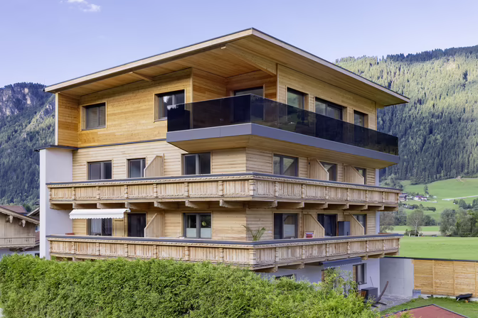Nachdem das Haus Linda um ein Stockwerk gewachsen war, passte das RIEDER Team die Fassade in heimischem Lärchenholz der Bestandsarchitektur an. Das Treppenhaus wurde erweitert, neu gedämmt und mit Fassadenplatten harmonisch gestaltet.