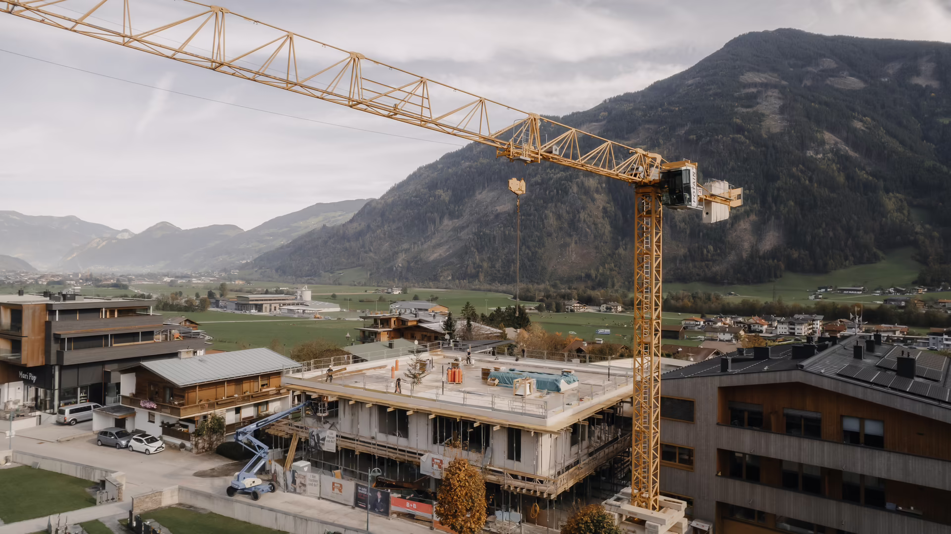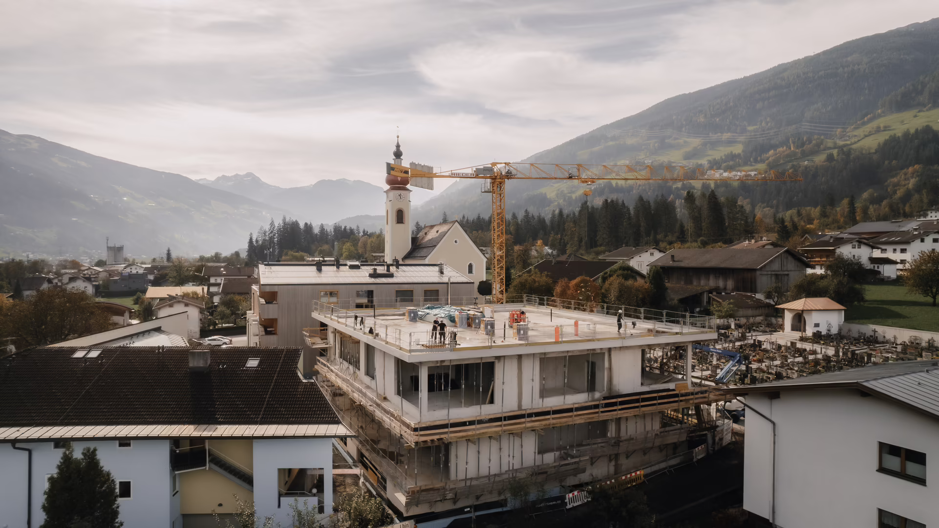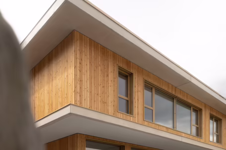 Auch das Holzbau Team ist mit von der Partie und ist für die Holzfassade zuständig.