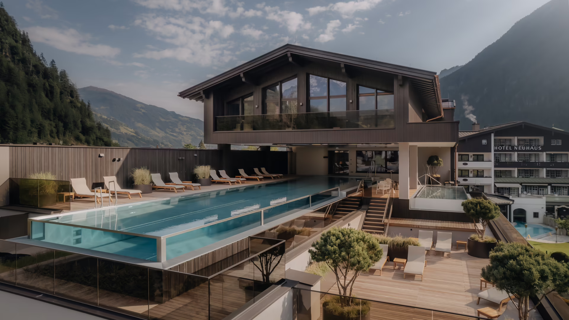 Familie Moigg bietet seinen Gästen im Neuhaus Zillertal Resort Hotel mit dem neuen Badehaus ein naturverbundenes Wellness-Erlebnis, das Raum zum Träumen und Zeit zum Sein gibt.