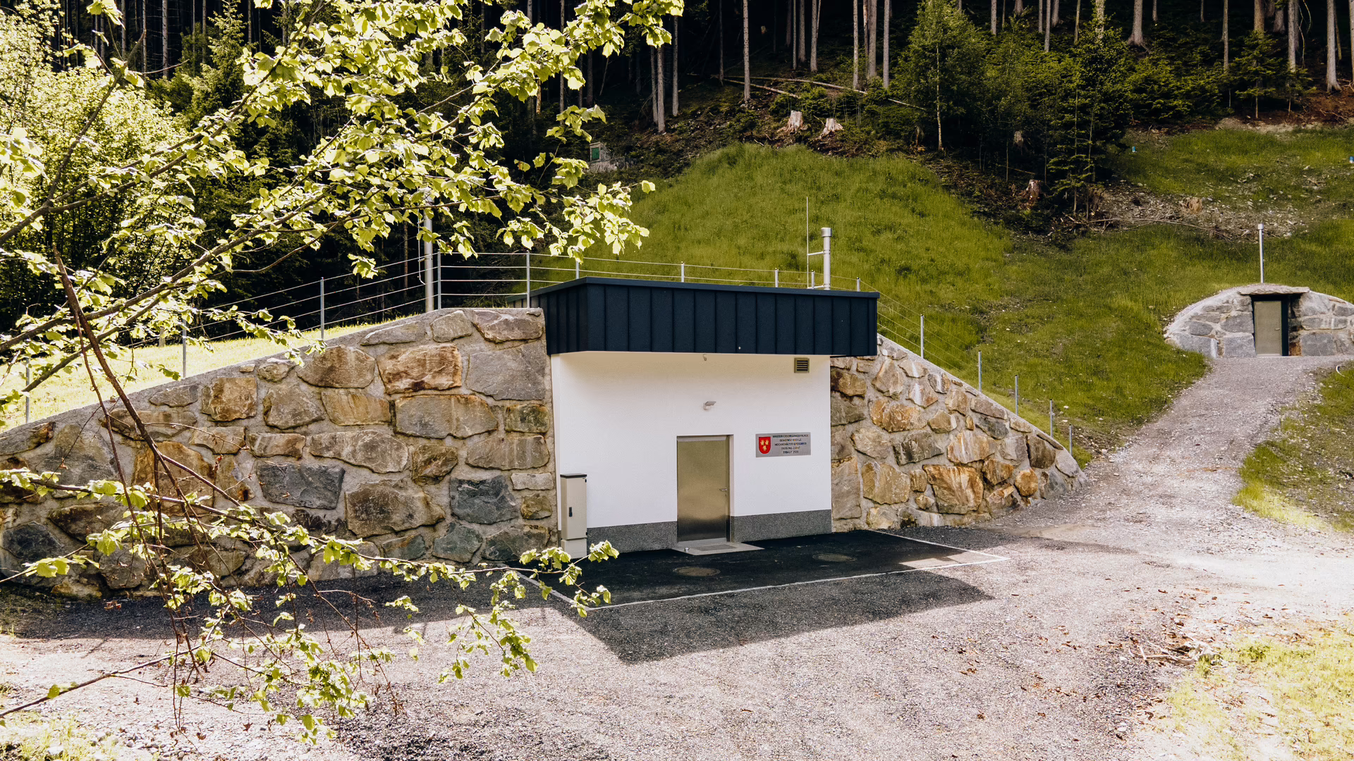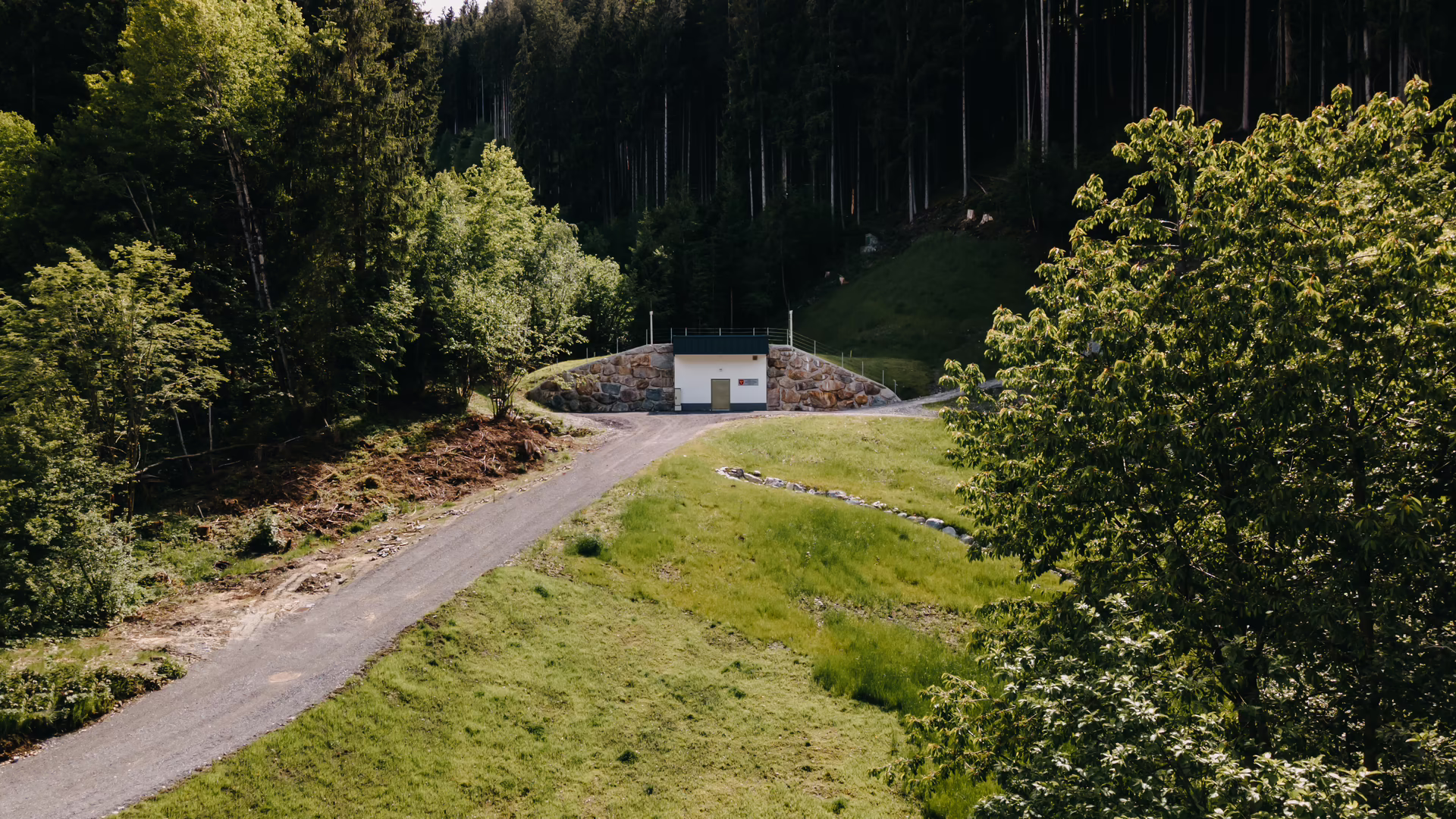 Das Projekt der Erneuerung der Trinkwasserspeicher der Gemeinde Ried umfasste zwei Baulose: Hochbehälter Taxach und Hochbehälter Großried. Nach Fertigstellung des Behälters Taxach, ging es für unsere Tiefbauabteilung beim Projekt Großried, unter der Leitung von Gerhard Eberharter, in medias res. Zuerst musste der Altbestand mit einem Fassungsvermögen von 200 Kubikmetern abgebrochen werden, um Platz für den neuen, modernen Hochbehälter mit 250 Kubikmeter zu schaffen. Doch was sich so einfach liest, beinhaltet natürlich viele einzelne Schritte mit genauer Koordination innerhalb des Bauvorhabens. Exaktes Arbeiten mal vorausgesetzt, denn ein Leck wäre fatal. Neben dem Leitungsbau sowie der Installation der großen Behälter – hier wurden die Betonarbeiten über unsere Hochbauabteilung ausgeführt - müssen Schlosser-, Fliesenleger-, Spengler- und Abdichtungsarbeiten verrichtet werden, bevor dann der Straßenbau begonnen werden kann. Im Zuge dessen wurde auch gleich ein neuer Zufahrtsweg angelegt. Weiters wurden auch die bestehenden Quellfassungen erneuert. Alles in allem sprechen wir von 500 Meter Entleerungsleitungen, 400 Meter Wasserleitung, 550 Quadratmeter Straßenbau & 185 Kubikmeter Steinmauererrichtung.