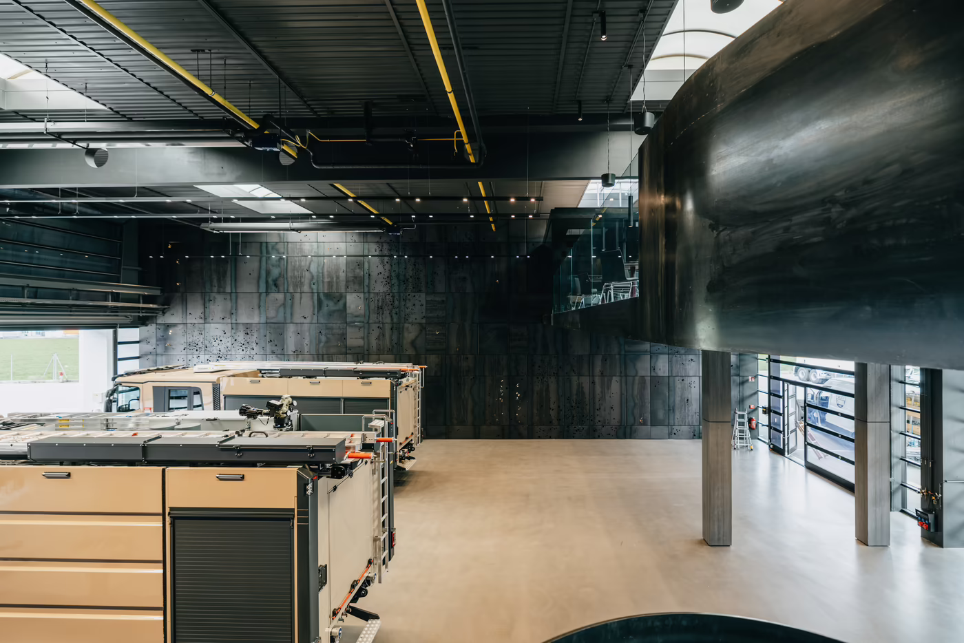Der angefertigte Farbbeton, der einen Schwarzanteil von drei Prozent aufweist, fügt sich in das Gesamtkonzept der Halle perfekt ein. Der ausgewählte Materialmix verleiht der neuen Halle ein sensationelles Erscheinungsbild, das die Kunden zum Staunen bringen wird.