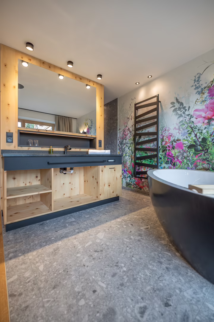 Anni und Ferdl heißen nicht nur die Gastgeber des Jörglerhofs. Jetzt kann man auch zwei nagelneue Suiten mit diesen Namen buchen! Das sonnige Gemüt der Gastgeberin Anni wurde im Design der gleichnamigen Suite festgehalten. Naturverbunden, bodenständig und weltoffen zugleich präsentiert sich die neue Suite Ferdl in der Farbe des Waldes!