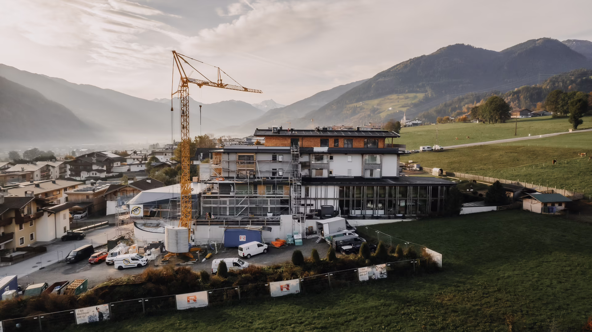 Die Erweiterung des Familienhotels in Fügen begannen Mitte März. In den kommenden Monaten wird intensiv gebaut, ohne dass es Einschränkungen im Hotelbetrieb gibt. Die Hochbauarbeiten werden von einem siebenköpfigen Team, zu denen auch die beiden Poliere Dengg G. und Dornauer R. zählen, mit viel Know-how und der richtigen Geschwindigkeit ausgeführt. Ab Dezember 2024 bietet das Hotel Mia Alpina zusätzliche Suiten, ein hochmodernes Fitnessstudio, einen erweiterten Spa-Bereich sowie innovative Indoor-Spielbereiche für die ganze Familie. Die neuen Einrichtungen wurden mit größter Sorgfalt und Liebe zum Detail gestaltet, um den Gästen einen unvergesslichen Aufenthalt zu garantieren.